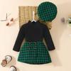 This adorable set is perfect for your little girl's wardrobe, combining comfort and style. It features a long sleeve turtleneck top made from soft, knitted material that provides warmth and coziness. Complementing the top is a charming plaid skirt, adding a touch of classic elegance to the ensemble. Ideal for any occasion, this set allows for easy movement while ensuring your toddler looks cute and fashionable.