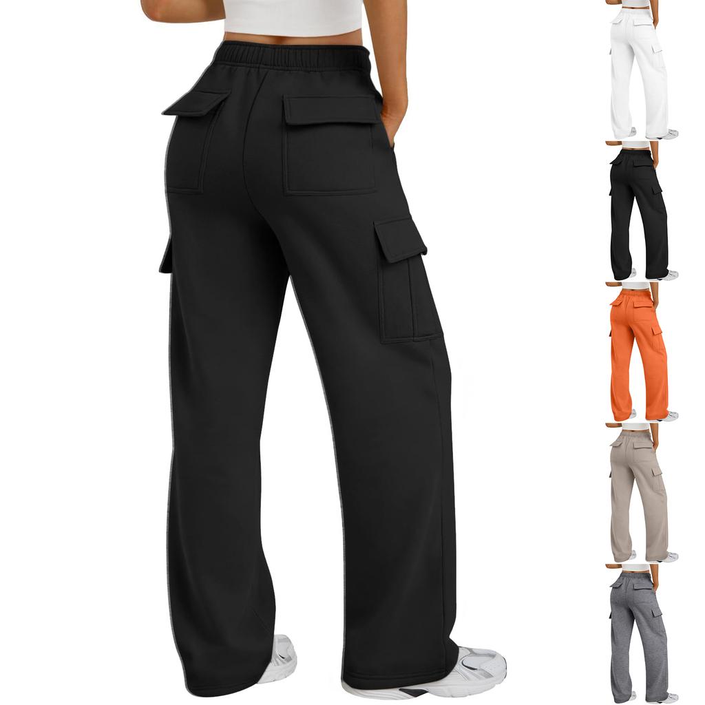 Women's Casual And Fashionable High-Waisted Wide-Leg Utility Trousers With Pockets