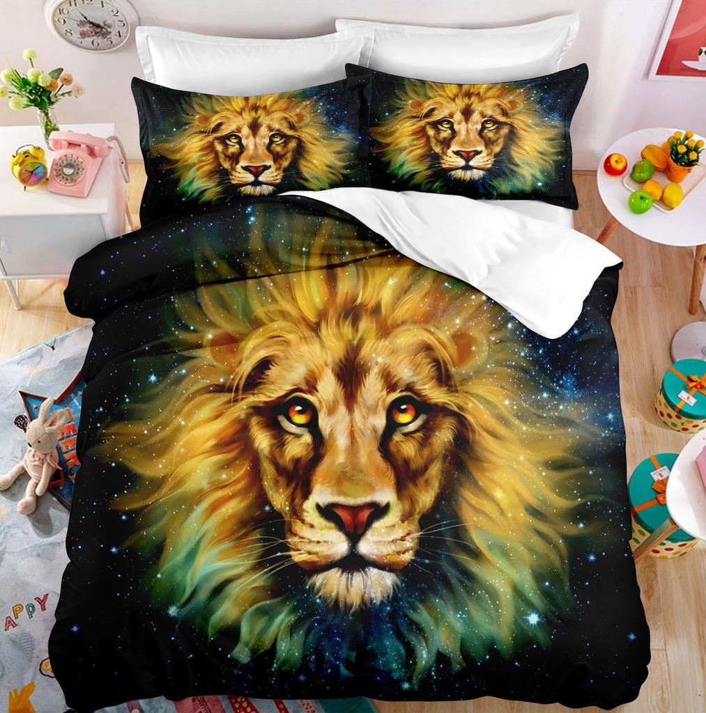 Lion Duvet Cover Set Roaring Lion White Wild Animals Polyester Comforter Cover King Queen Size For Kids Adults Teen Bedding Set