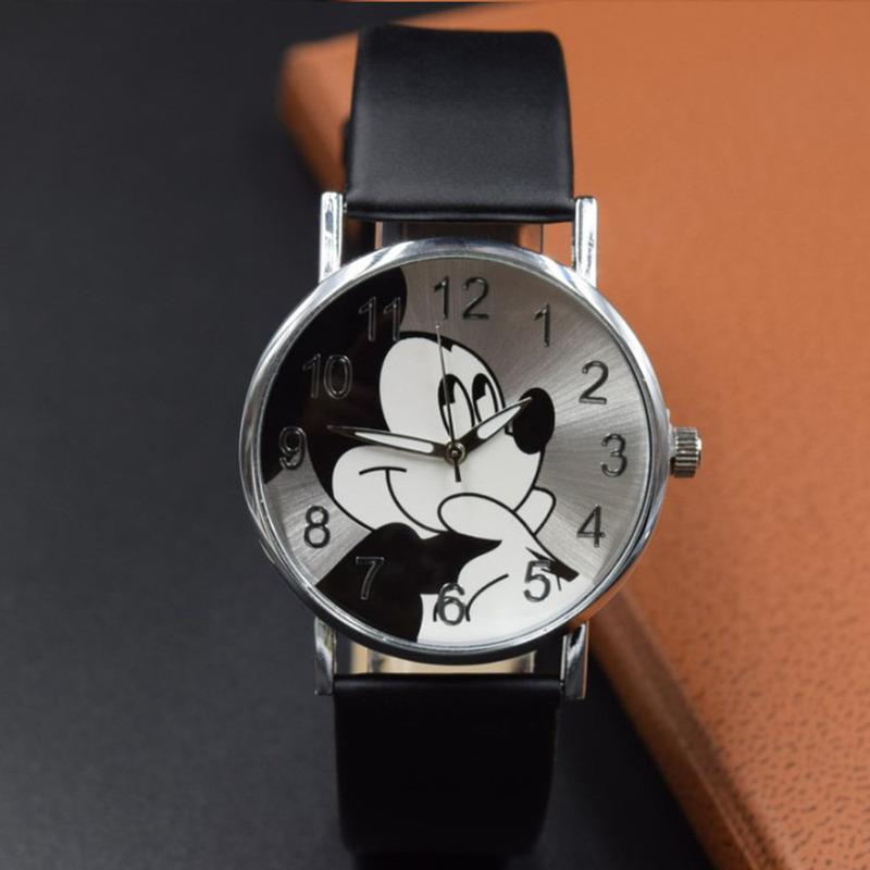 Disney Mickey Cartoon Children's Watch Fashion Watch PU Leather Strap Quartz Watch Boys and Girls Student Birthday Gift