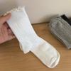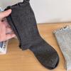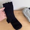 Black Fungus Edge Socks, Women's Mid-calf Socks, Combed Cotton Socks, Vertical Striped Ballet-style Pile Socks
