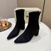 Women Suede High Heels Pointed Toe Ankle Boots Designer Chunky Shoes 2025 Winter New Short Boots Fashion Elegant Zapatos