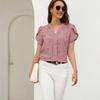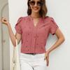 Ladies Summer Short Sleeve V Neck Casual Love Heart Printed Pullover Blouse Shirt Top