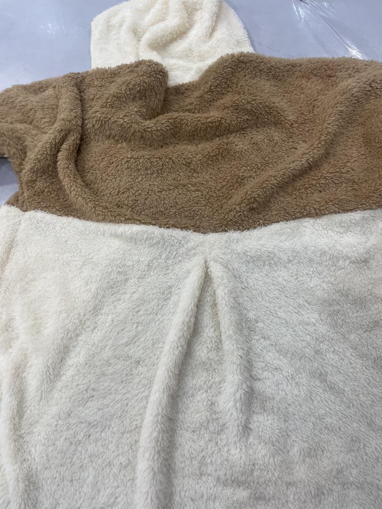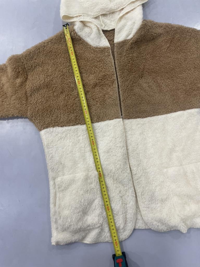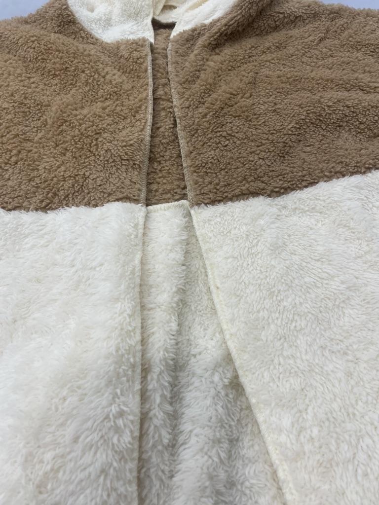 Fashion Women Plush Pocket Hooded Cardigan Jacket Casual Loose Stitching Jacket