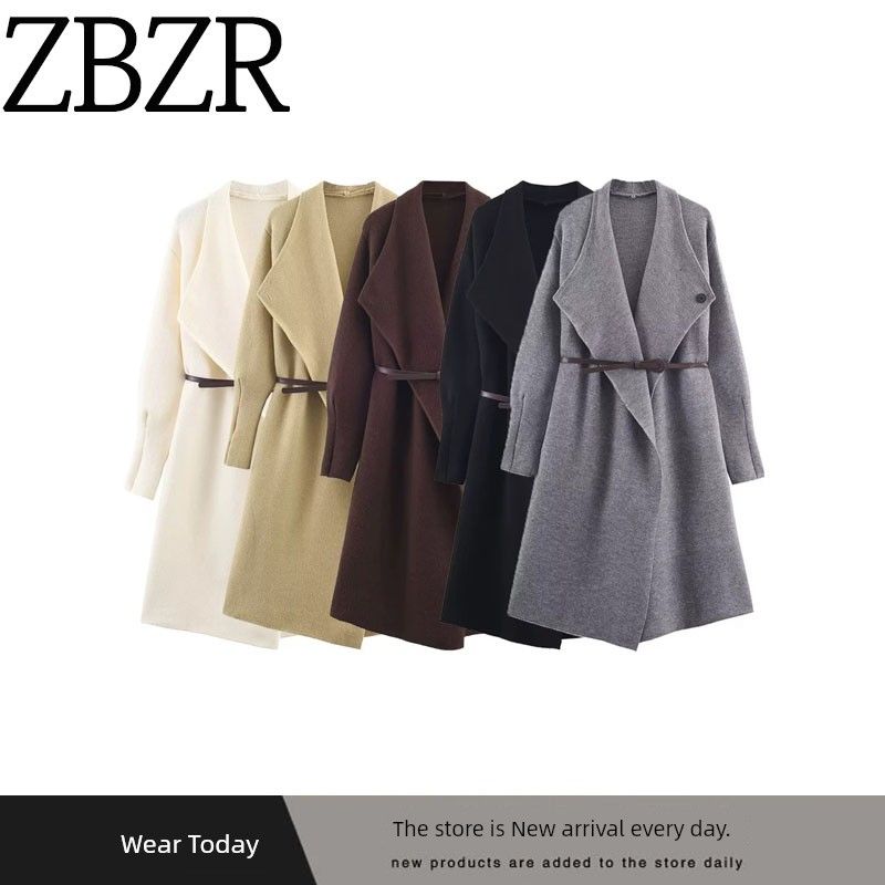 Za Export New Arrival Women's Clothing ZR Fashion Wind Fashion Street Easiest for Match Loose and Simple Configuration Belt Knitting Overcoat