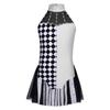 Girls Clown Costume Color Block Patchwork Rhinestone Decorative Leotard Halter Sleeveless Backless Waist Mesh Overlay Jumpsuit