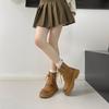 Cowhide~ British Martin Boots Autumn and Winter New Polished Thick-soled Lace-up Tooling Belt Buckle Short Boots Women's Locomotive Boots