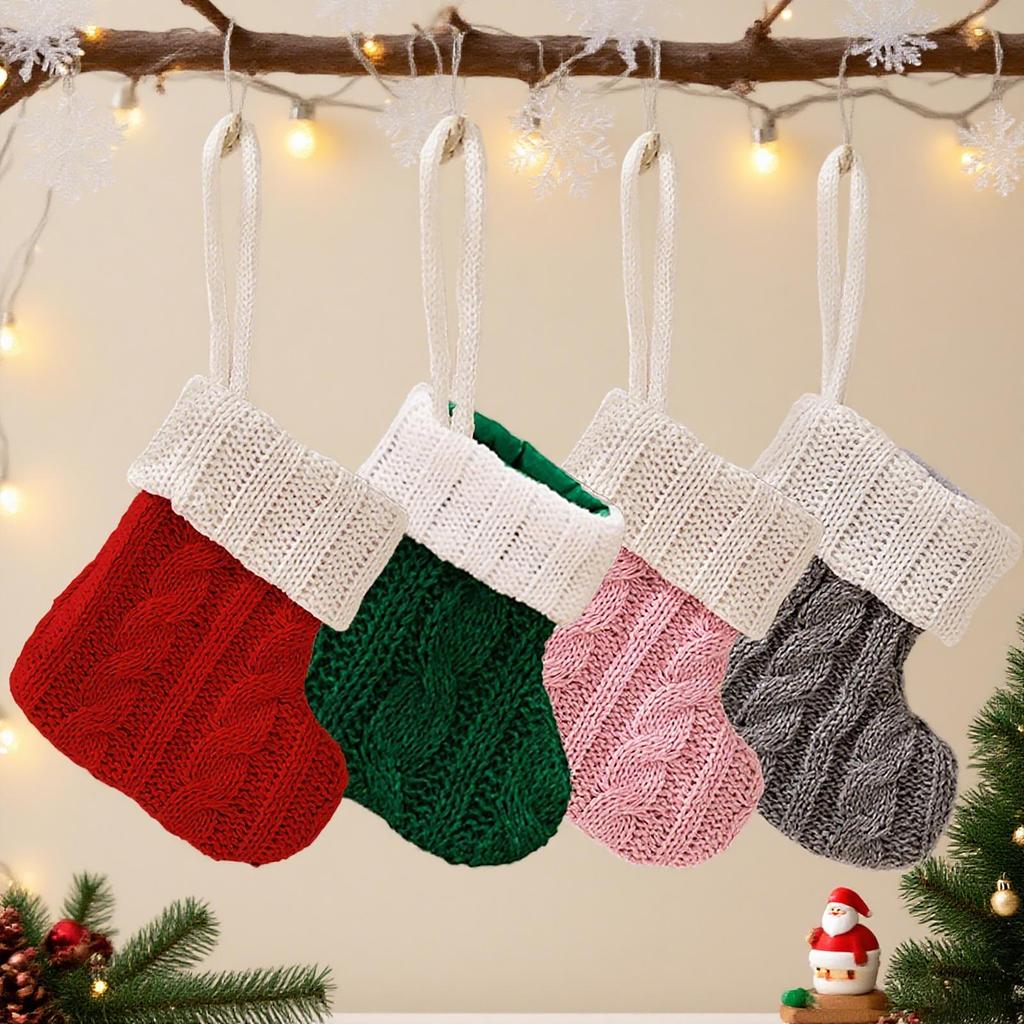 Mingguan New Cartoon Striped Christmas Stocking and Knife Fork Set Pendant Gift Bag