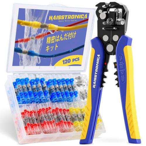 Haisstronica 120-Piece Solder Seal Wire Connector Kit, 10-24 AWG, with Self-Adjusting Wire Stripper Tool, Waterproof Heat Shrink Butt Terminals for Ca