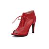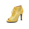 FOREADA Women Hollow Mesh High Heels Sandals Peep Toe Stilettos Lace-up Sexy Jazz Dance Boots Ladies Fashion Shoes Summer 46