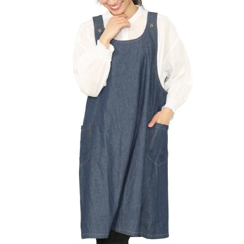 ON NISHIKI Women's Denim Apron (Solid/Hickory) Stylish and Cute Denim Apron with Pockets (Solid Indigo/ML/n12091)