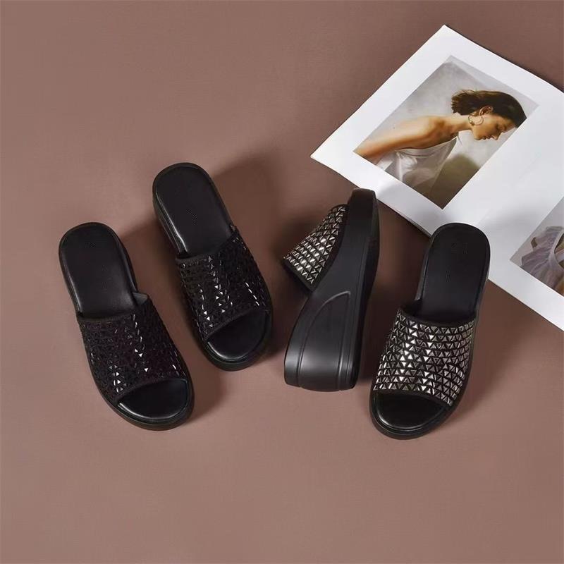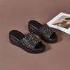 Rhinestone Soft Leather Cool Slippers Women's Summer Wear 2025 Fashion Casual Thick-soled Wedge Heel Silver One-word Women's Shoes
