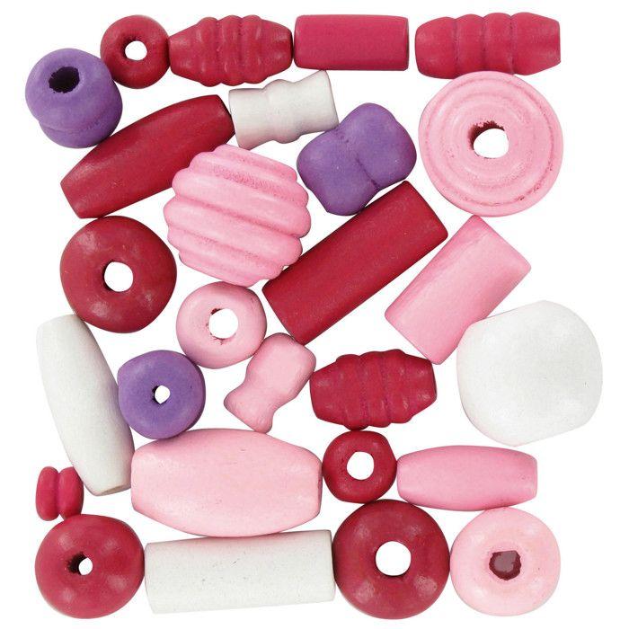 Perles en bois 0,5 à 2 cm Assortiment rose