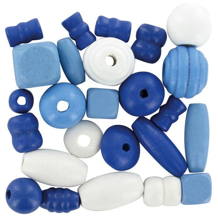 Perles en bois 0,5 à 2 cm Assortiment bleu 50 pièces