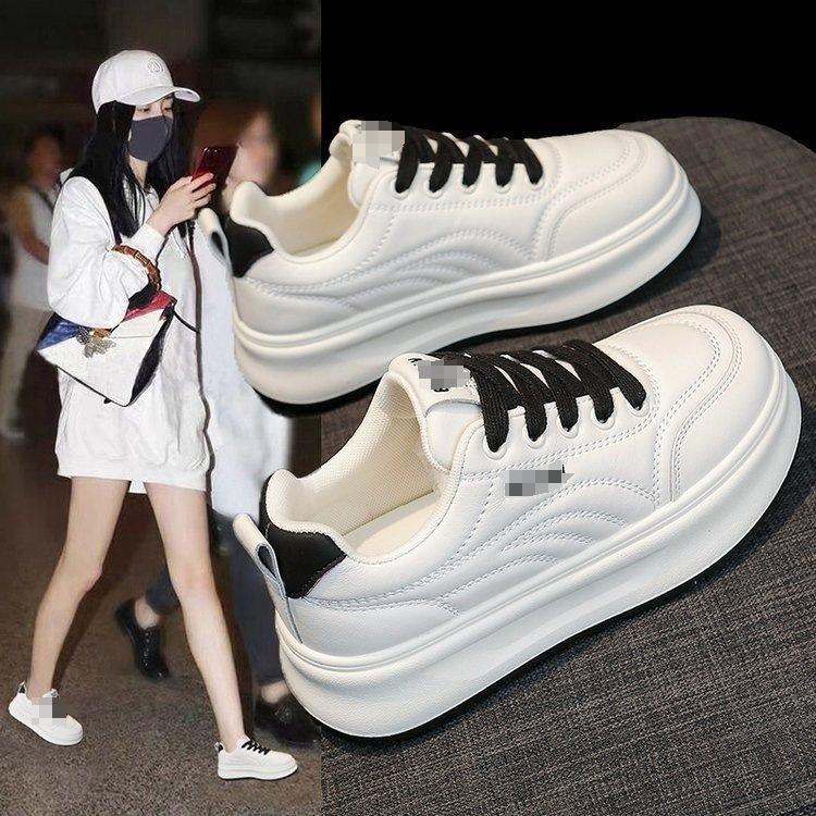 Thick-soled Sports and Leisure Shoes Women's 2025 Autumn New Popular Versatile Soft-soled White Shoes Bread Heightening Board Shoes