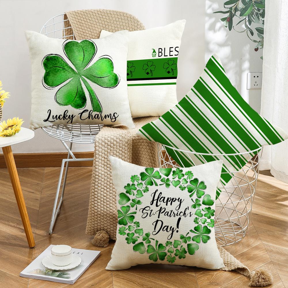 Four-leaf Clover Pillow New Sofa Cushion Cover National Day Green Pillow St. Patrick's Day Pillow Cover