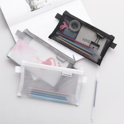 Simple Transparent Mesh Office Student Pencil Cases Nylon School Supplies Pen Box
