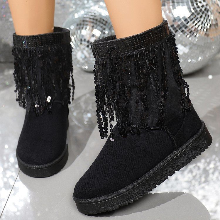 Round Head Suede Casual Women's Small Leather Boots 2025 Summer and Autumn New Fashion Sleeve Fringed Boots Thick High School Heel Women's Shoes