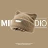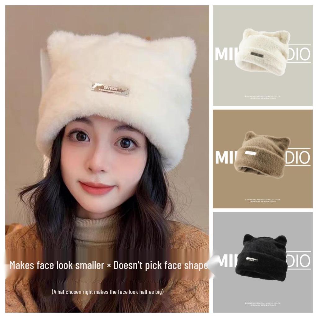 Korean Cute Cat Ears Faux Mink Knit Beanie for Women, Fashionable Head-Wrapping Cap for Large Circumferences