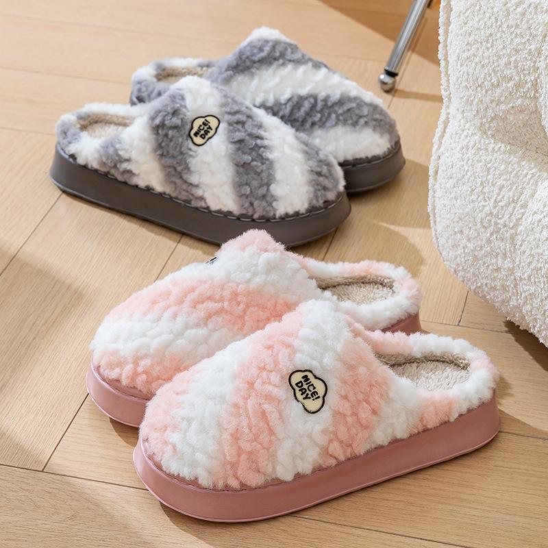 Rainbow Color Matching Cotton Shoes Autumn and Winter Leisure Indoor Home EVA Sole, Couple Thick-soled Warm Cotton Slippers