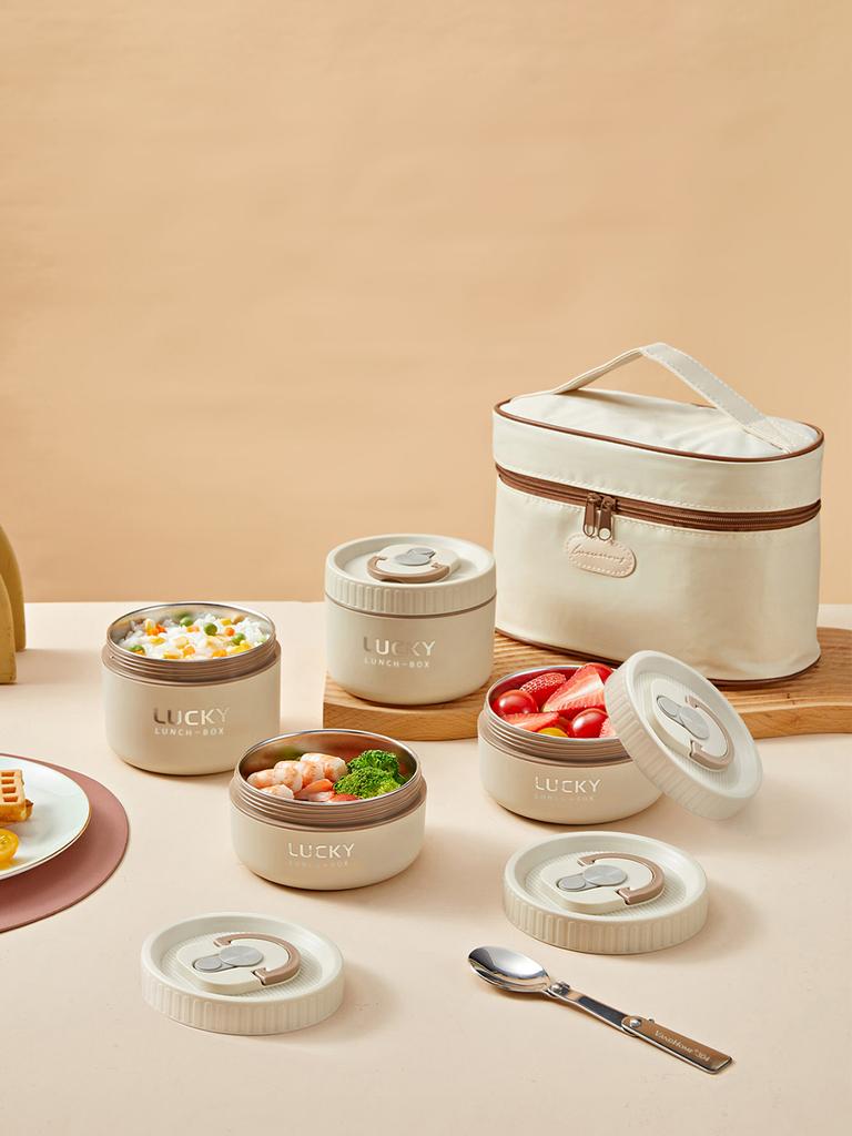 Portable 304 Stainless Steel Thermal Lunch Box Leak-proof Insulated Food Jar Microwave Heatable Kid Student Food Container Set