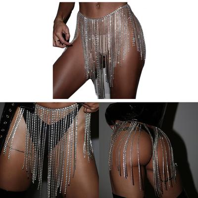 Sexy Body Chain Shinning Waist Chains with Rhinestone Tassel Pendant Night Club Body Jewelry for Woman Hot Girls