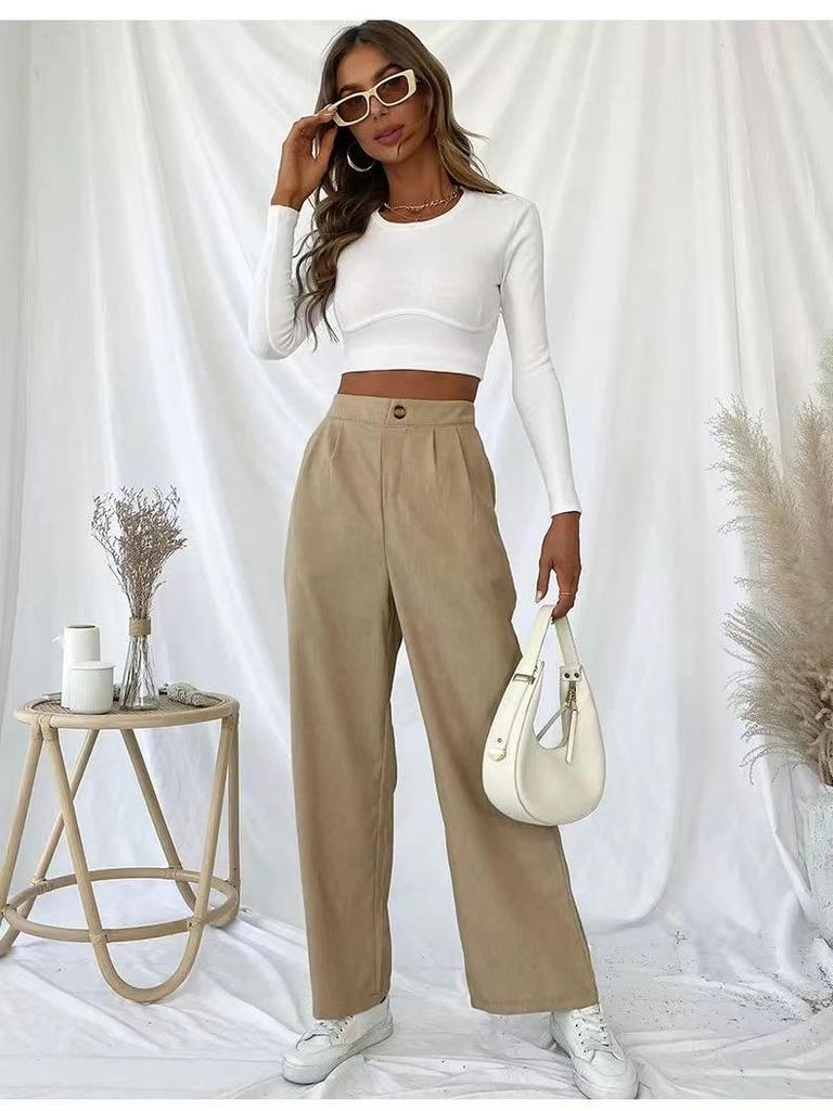 Women's Corduroy Wide-Leg Casual Pants - European and American Style