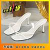 Sandals 2025 New Women's Sandals Outer Wear Toe Transparent French High Heels Summer Square Head Stiletto Fairy Slippers