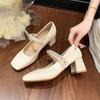 Leather Summer Women's Shoes New Shallow Mouth Mary Jane Single Shoes One-word Skirt Thick Heel Single Shoes Women