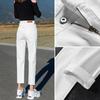 Embrace effortless style this summer with these Women's White High-Waist Straight-Leg Stretch Jeans. Crafted from a soft and breathable cotton material, these jeans offer both comfort and flexibility throughout the day. The high waistline provides a flattering silhouette, while the straight-leg design ensures a relaxed, casual look that's perfect for any occasion. Whether you're heading to a brunch or a beach outing, these jeans are a versatile addition to your summer wardrobe.