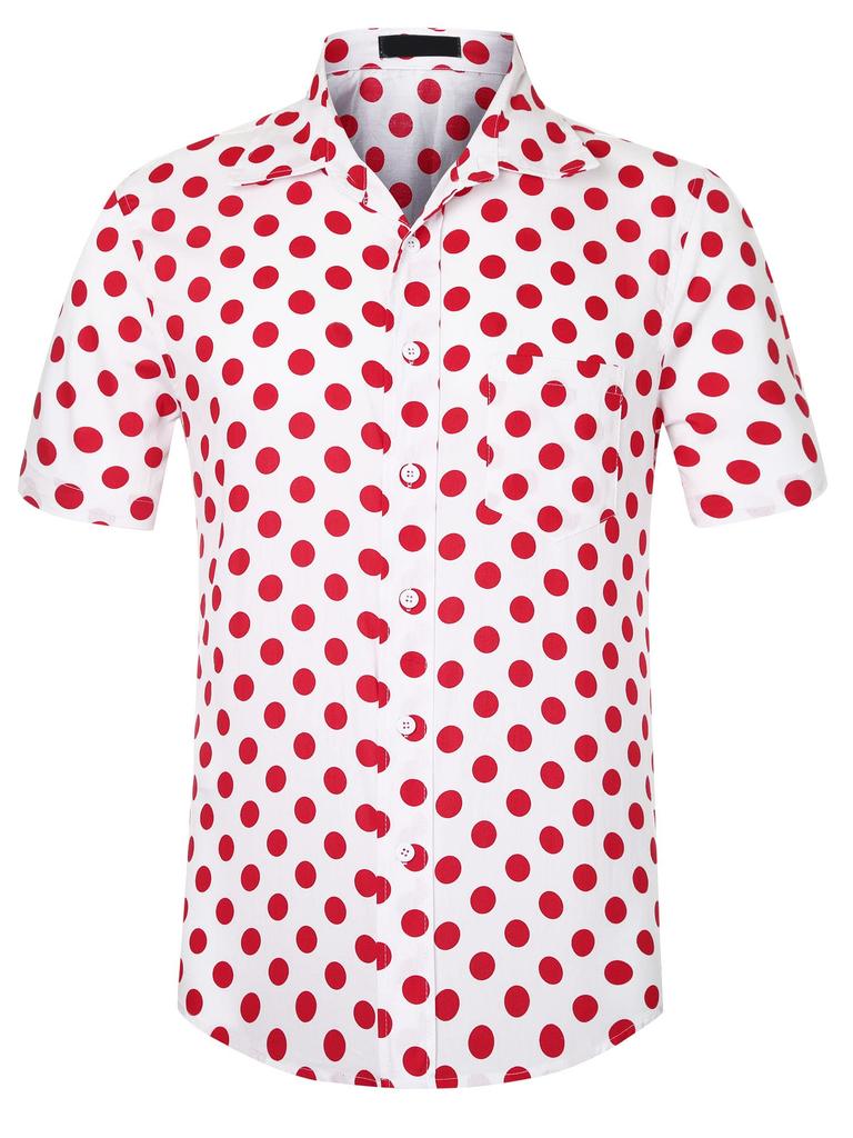 Lars Amadeus Slim Fit Polka Dot Dress Shirt with Collar and Size 2XL Men's Button-Down Pockets, Red,