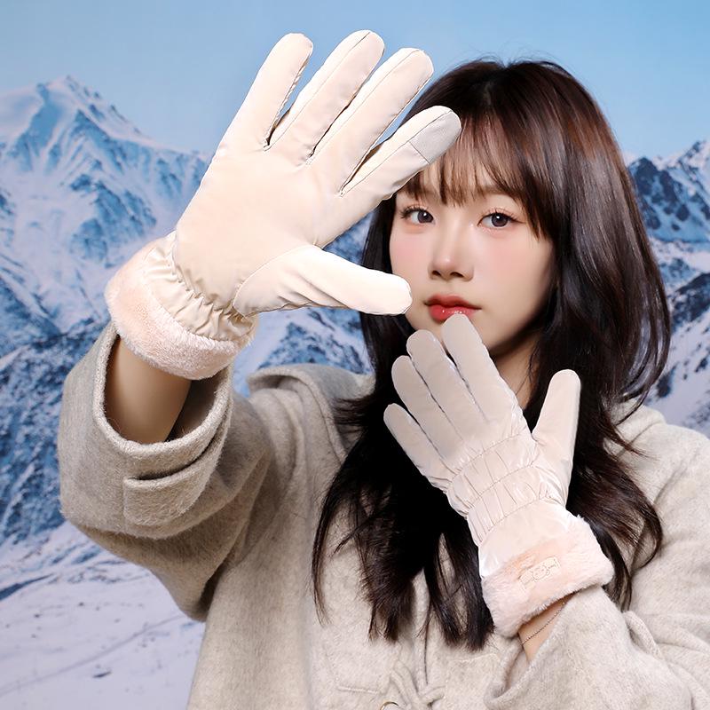 Women's Fleece-Lined Winter Cycling Gloves - Korean Style, Cute, Warm, Water-Repellent for Outdoor Use