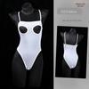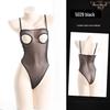 Sheer Mesh Open-Cup Garter Bodysuit with Open Crotch