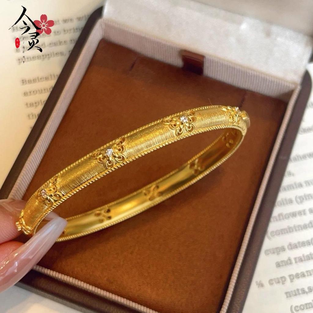 Retro Court-Style Rhinestone Butterfly Clasp Bracelet with Brushed Texture - High-End, Luxurious Niche Design Jewelry