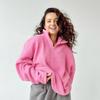 Trendy Pink Lambswool Stand-up Collar Sweatshirt - Loose Fit, Long Sleeve, Versatile for Autumn/Winter Fashion.