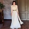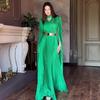 2024 Autumn Women's V-Neck Mesh Splicing Elegant High-Waist Evening Dress