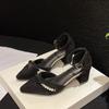 Baotou Sandals Women's Summer New Fairy Style Thick Heel Pointed Head Hollow Fashion Versatile with Skirt Single Shoes