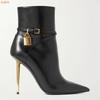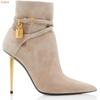 Solid Color Pointed Toe Ankle Boots Gold Lock Metal Heel Stiletto Heel 10CM Women Patent Leather Suede Short Boots 44 SIZE