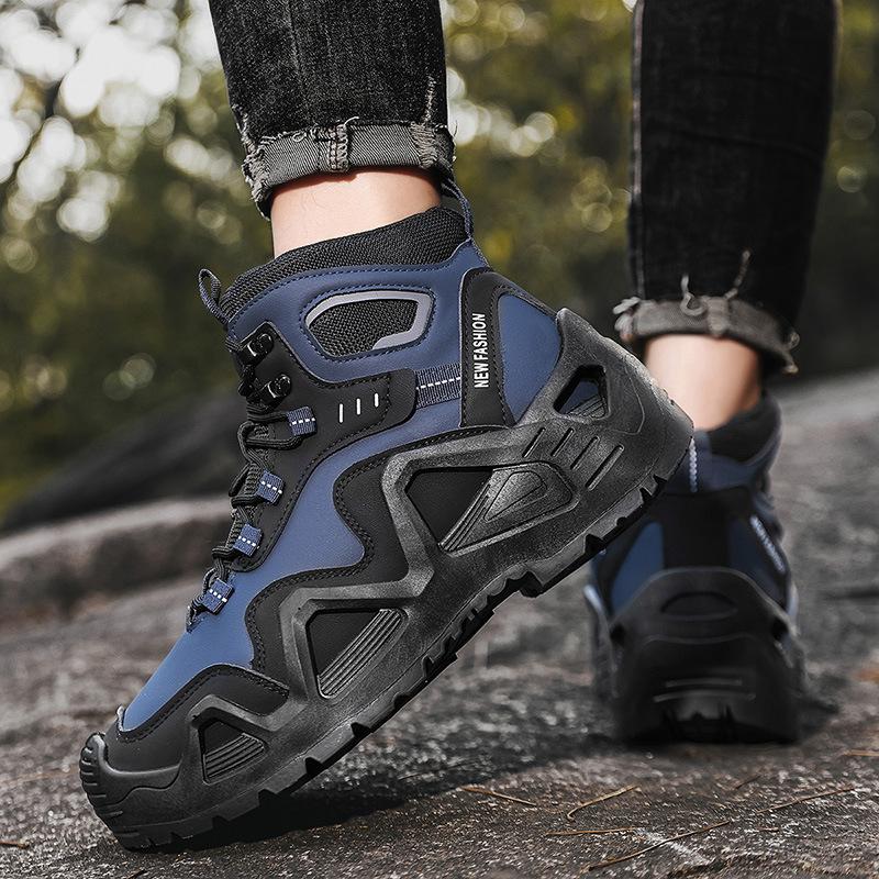 Large Size Outdoor Sports Non-slip Travel Shoes Wear-resistant Hiking Shoes Men's Thick-soled Medium-top Men's Shoes