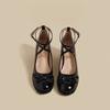 Shallow Single Shoes Women's Summer New Celebrity Burgundy Patent Leather Thick High-heeled Mary Jane Shoes