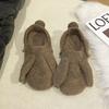 Cute Three-dimensional Rabbit Ears Fluffy Shoes Women Wear Versatile Fashion In Autumn and Winter, One-pedal Flat-bottomed Fluffy Cotton Shoes
