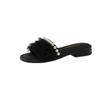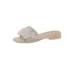 Beaded Mesh Flip-flops Summer New Round Toe Open Toe Soft Sole Non-slip Wear-resistant Low Heel Shoes