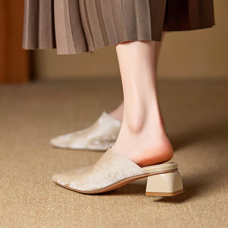 Fashion 2025 Summer Women Shoes Genuine Leather Square Toe Women Sandals Solid Modern Sandals for Women Shaped Heel Women's Mules Shoes