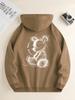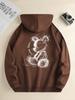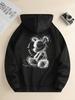 Fashionable Men's Autumn Minimalist Teddy Bear Print Soft and Comfortable Hooded Sweatshirt Outdoor Urban High Street Clothing