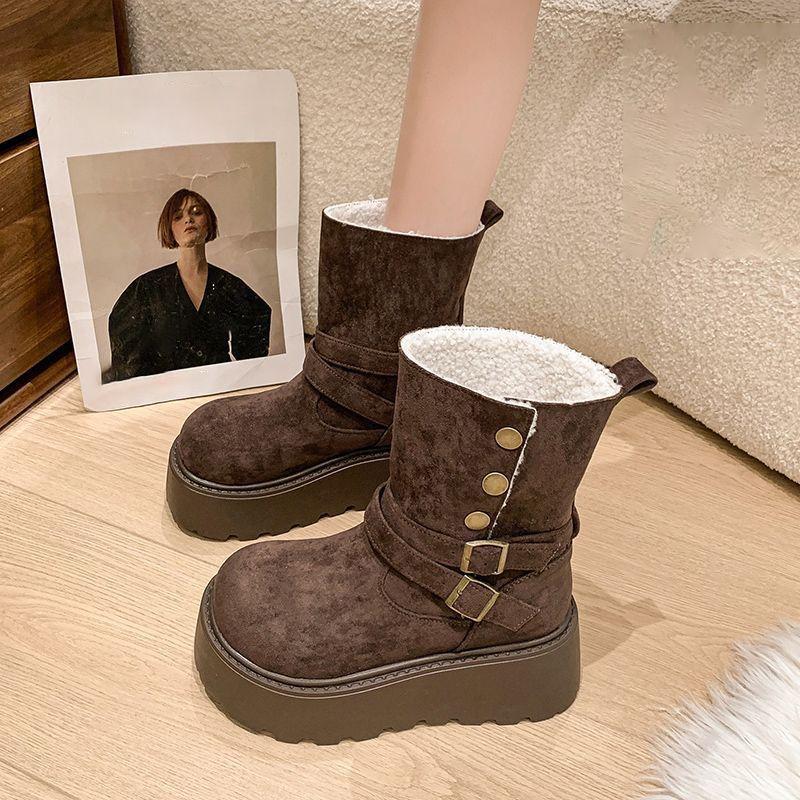 Fashion Versatile Velvet Comfortable Medium Boots Children Autumn and Winter New Casual Thick-soled Two Wear Snow Boots Women