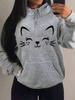 Simple Cat Smiley Face Pattern Women's Hoodie Fashionable Casual Street Trend Personality Hip Hop Hoodie Trendy Pullover Graphic