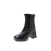 Martin Boots Women's Autumn and Winter New Fashion Square Head European and American Retro High Heel Thick Heel Rear Zipper Thin Short Boots