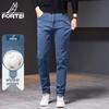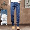 Futing Men's Washed Cotton Straight-Fit Jeans