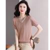 Elegant Ice Silk Knit V-Neck Short-Sleeve T-Shirt for Women