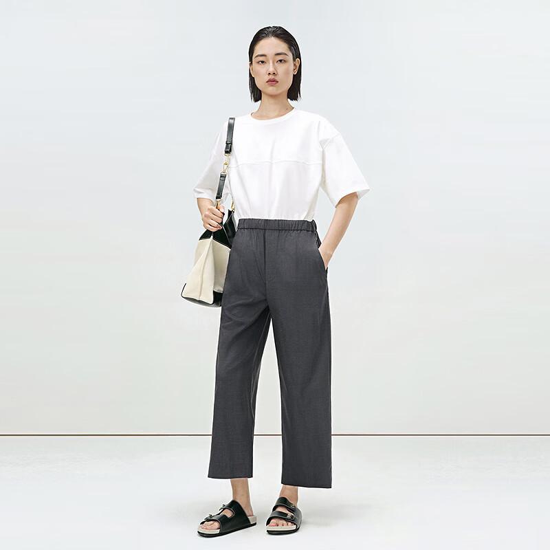 LESS 2025 Summer Straight-Leg Cropped Wool Commuter Pants